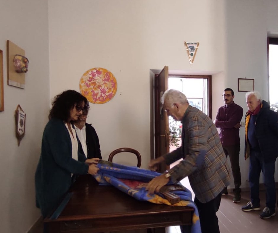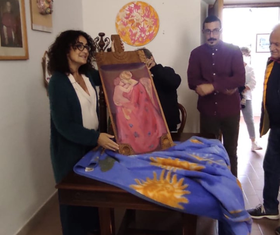 Alla presenza dell'Assessore alla Cultura, Ernestina Cianca, del Presidente dell'Associazione culturale "Lin Delija", Pasquale Chiuppi, del collezionista Armando Nicoletti, e di un folto pubblico locale, i coniugi Rubine Peters Grimm e Hilmar Grimm, collezionisti tedeschi, hanno donato la splendida opera del Maestro Lin Delija che vedete in foto.